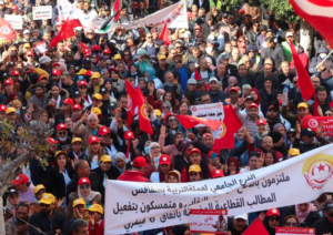 Thousands of members of Tunisia’s powerful UGTT trade union took to the streets of eight cities on Saturday to